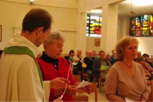 Joyeusement animée par une chorale en toute grande forme, l’assemblée s’est faite attentive à l’homélie de Mgr Hudsyn (lire par ailleurs), particulièrement recueillie lorsqu’Alix de Biolley, membre de l’équipe d’aumônerie du Centre William Lennox à Ottignies et Isabelle Pirlet, responsable du Service catéchuménat, appelées solennellement, se sont exprimées de manière très personnelle sur leur engagement respectif. Après les deux animatrices pastorales, c’est Louis-Marie Denis qui a été officiellement accueilli comme nouveau membre de l’équipe du Crématorium.