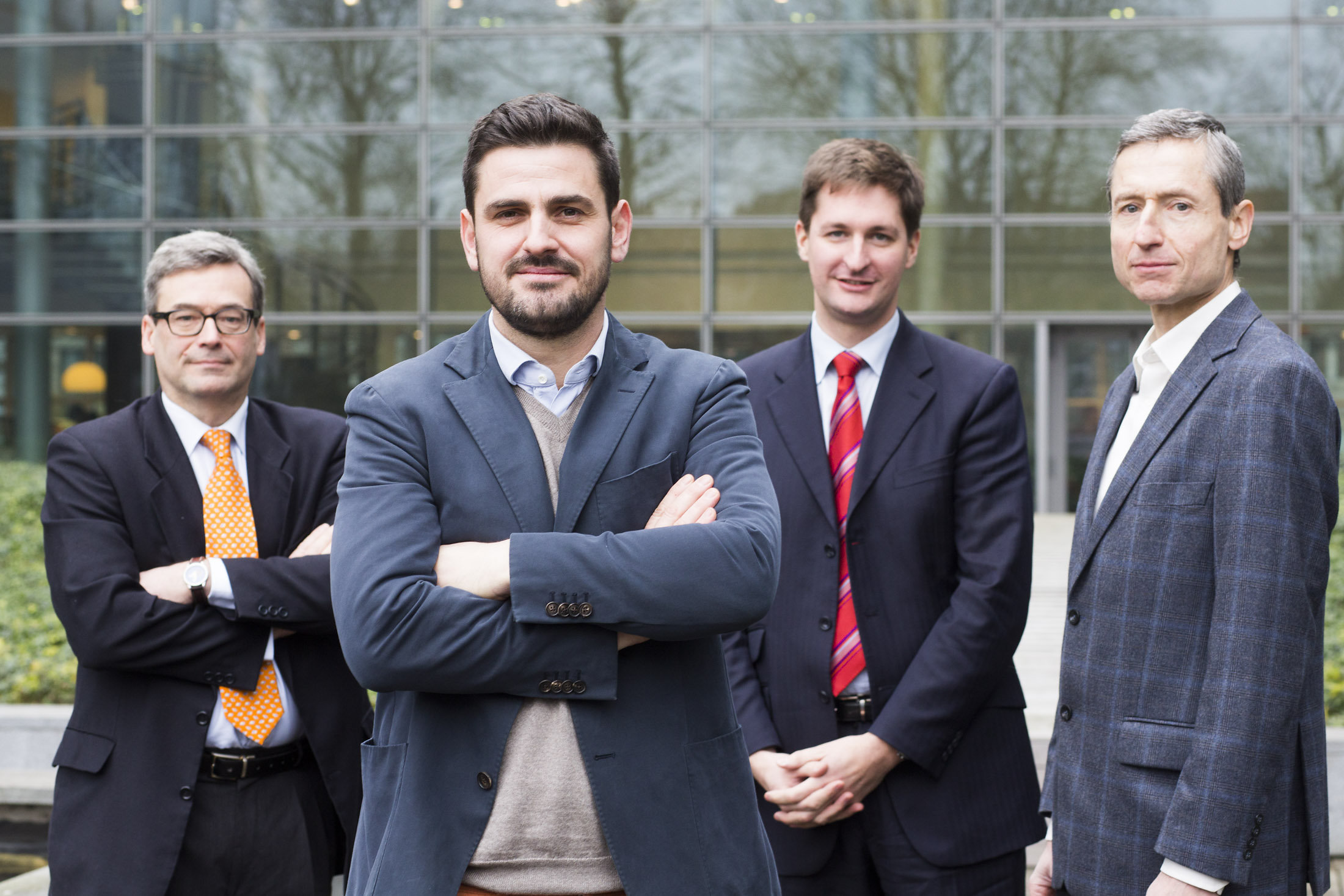 A l’ext.gauche Ferdinand de Broqueville. A l’ext. droite Jean-Patrick Brabant, les fondateurs et au milieu le lauréat du prix Braville Géry Despret