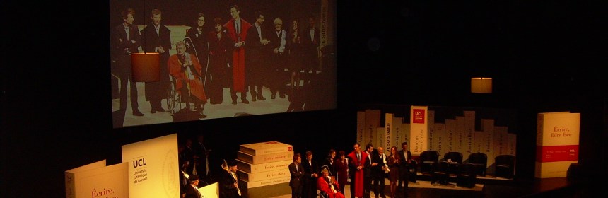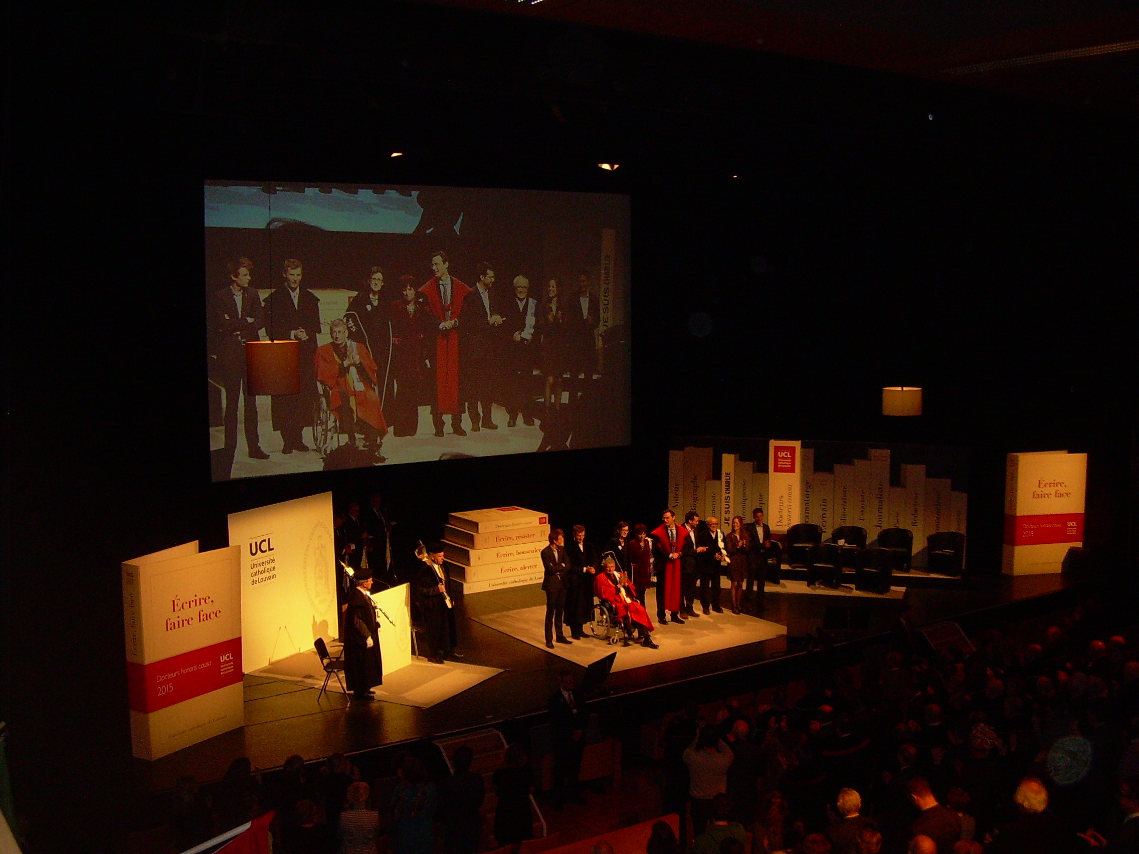 Un décor exceptionnel, avec des livres plus grands que nature, des lauréats souriants et ému, une assemblée conquise… A l’UCL, la cérémonie de remise des Docteurs honoris causa, cuvée 2015, est une réussite.