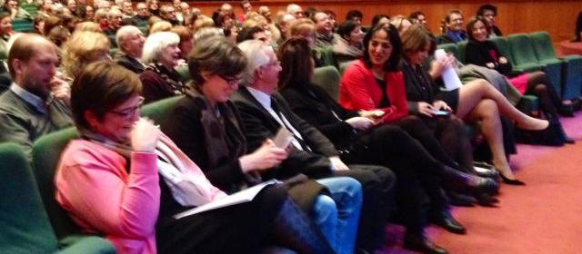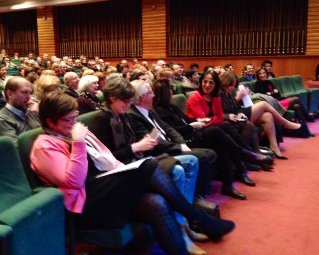 C’est à l’Administratrice générale de la COCOF Madame Bernadette LAMBRECHTS (en avant-plan sur la photo) qu’échut l’honneur d’accueillir les invités dans le magnifique Auditorium Jacques Brel. Séance suivie, comme à l’accoutumée, d’un drink convivial réunissant les participants dans les locaux pédagogiques de l’Institut Emile GRYZON : le « Jardin d’hiver » et le restaurant « La Rotonde ». Institution d’enseignement dirigée par Madame Anne JONGEN. Une excellente prestation didactique pour les élèves et étudiants sous la conduite de professeurs chevronnés. Les locaux étaient décorés pour la circonstance par les professeurs et élèves de l’Institut REDOUTE PEIFFER.