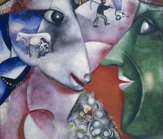 Marc Chagall naît le 7 juillet 1887 dans une famille de juifs hassidiques en Biélorussie. De son enfance à Vitebsk, Chagall restera profondément imprégné par cette religion instaurant une joyeuse communion avec Dieu, notamment à travers le chant et la danse. En 1911, il quitte son village russe, qu’il retrouvera cinq ans plus tard, et s’installe à Paris. Il découvre là la peinture d’avant-garde; une peinture qu’il fait sienne tout en préservant un langage tout personnel que seul Chagall est capable de (dé)peindre; une palette originale, riche de ses origines.