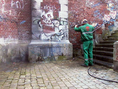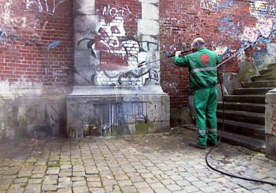 La Ville de Bruxelles dispose même d’une cellule anti-graffiti composée de quatre ouvriers utilisant des sableuses pour nettoyer les bâtiments de la ville, les écoles, le mobilier urbain mais également les façades des particuliers.