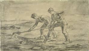 Deux mois avant son départ, le 20 août 1880, il s’ adressait à Théo en ces termes: « Tu dois savoir que je suis en train de griffonner de grands dessins d’ après Millet et que j’ ai fait « Les Heures de la Journée », ainsi que « Le Semeur ». Je t’ écris en train de dessiner et je suis pressé de m’y remettre ».
