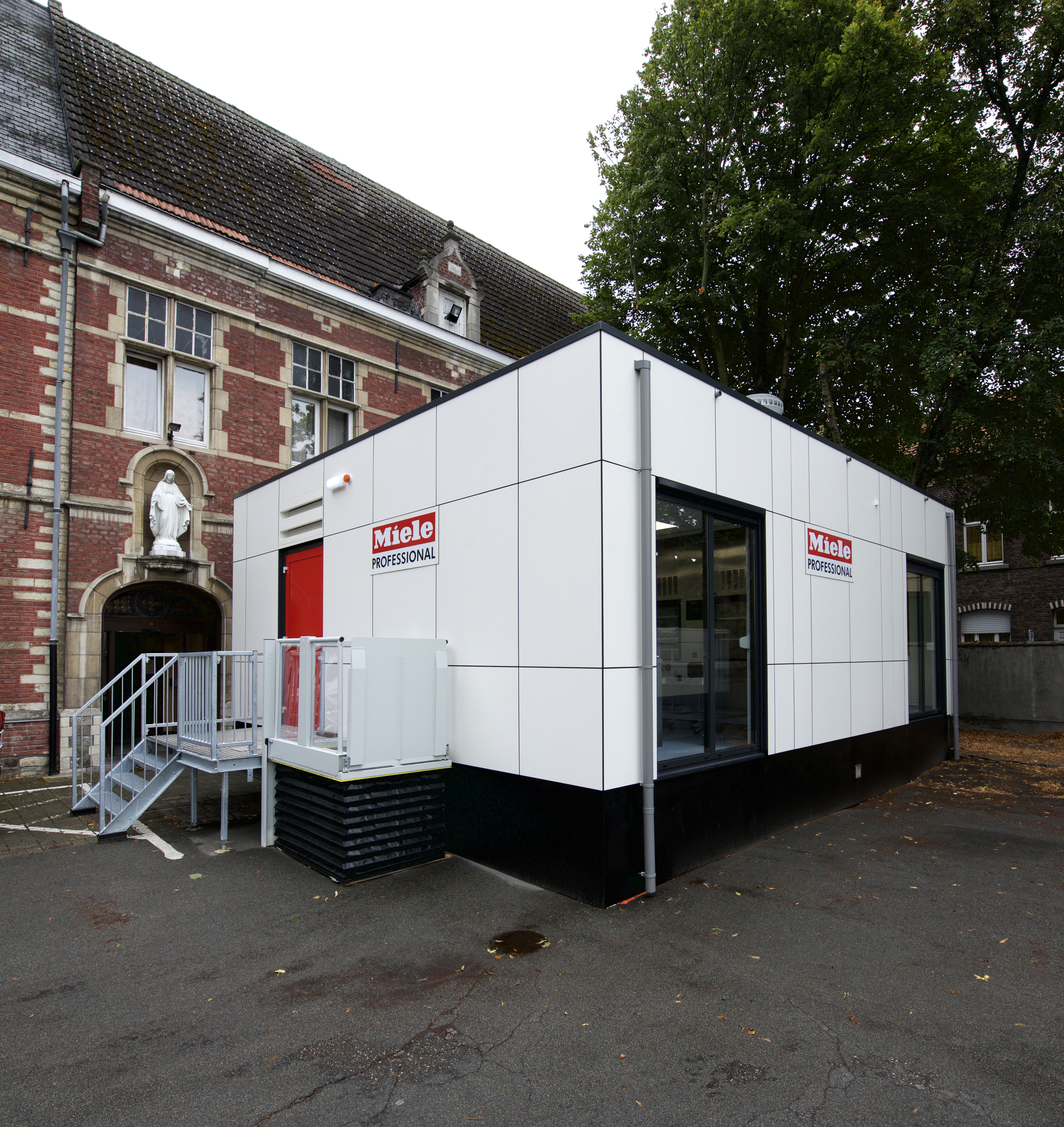 Miele Professional heeft de unit ontworpen in voortdurend overleg met alle betrokken departementen van het ziekenhuis. Alle leidingen, nutsvoorzieningen en sterilisatietoestellen zijn in de fabriek gemonteerd en de 3 aparte units werden per speciaal transport naar Tienen vervoerd waar ze ter plekke naadloos aan elkaar werden gemonteerd. Na de keuring door een onafhankelijke instantie zal de allereerste mobiele sterilisatie-unit begin augustus in gebruik worden genomen.