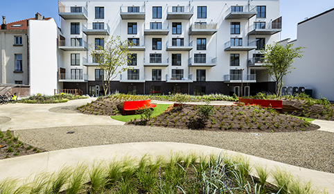 Gemoedelijkheid, sociale gemengdheid en duurzame ontwikkeling. De openbare en private partners hebben niet enkel werk gemaakt van uitstekende energieprestaties, maar ook van de gemoedelijkheid van de ruimten. De aanleg van de openbare ruimte werd toevertrouwd aan een gespecialiseerd studiebureau. Tussen de twee gebouwen zijn er verschillende groene eilandjes met een waaier aan struiken- en plantensoorten. De centrale plaats, die omzoomd is met banken, is een ontmoetingsruimte voor de bewoners, net als de collectieve moestuin achteraan het complex. In deze moestuin zijn ook voorzieningen voor personen met beperkte mobiliteit.