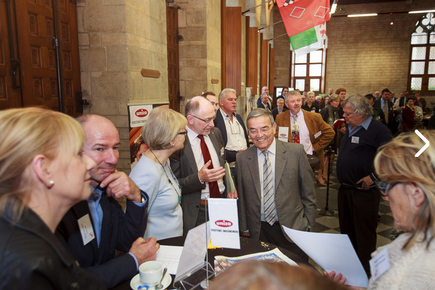 De burgemeester Louis Tobback van Leuven ontving gisteren, op initiatief van Unizo, de leuvense handelaars op ontbijt.