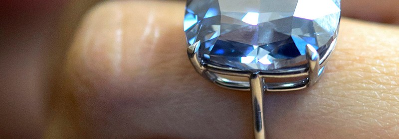 Le diamant, de forme dite « coussin », monté sur une bague et pesant 12,03 carats, était estimé avant la vente entre 35 et 55 millions de dollars.