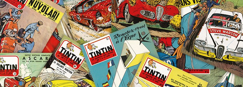 Evénement au« Sablon« , au sein de la « Galerie Tintin©Hergé », Michel Vaillant retrouve Tintin, sur 20 luxueuses affiches des anciennes couvertures, publiées entre 1953 et 1969, de « Tintin, le Journal des Jeunes de 7 à 77 Ans », l’hebdomadaire de bandes dessinées des « Editions du Lombard », édité de l’année où Jean Graton émigra en Belgique, en 1946, jusqu’en 1988.