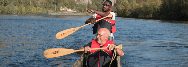 Musambu Junior Higuet et Laurence Debry naviguant sur la Meuse