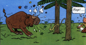 A juste titre, nous pouvons nous étonner de la manière dont « Tintin » traîte, ici, les animaux. Hergé s’en excusa, lors d’un entretien avec Numa Sadoul, en 1971, publié dans « Tintin et moi, Entretiens avec Hergé » (Ed. « Casterman »/1975) : « J’aime beaucoup les animaux. Et justement, j’ai du remord d’en avoir tué ou fait souffrir… Comment ai-je pu me montrer d’une cruauté aussi effroyable. Je n’ai pas fini de le regretter, comme autant de mauvaises actions que j’aurais réellement comises. »