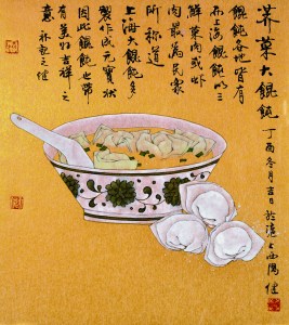 Des peintures d’un autre artiste shanghéen soulignent la beauté des fleurs de lotus, symboles de paix et de pureté, dans la culture chinoise, alors que d’autres oeuvres nous invitent à goûter à l’excellente gastronomie chinoise…