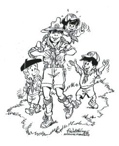 Autoportrait du dessinateur « boy scout » (c) Walthéry/ »Oufti »/ »Syndicat d’Initiative de Jambes »