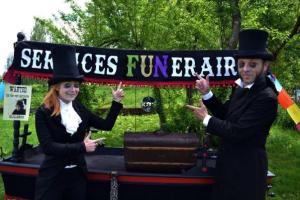 *** nous venant de Nancy, la« Compagnie du Clair-Obscur », composée par deux artistes de rue, nous présentent leur projet atypique, « Vénère Gumaine, croque morts à l’Ouest », un spectacle théâtral mêlant l’humour à la chanson, fourmillant d’idées farfelues, d’une durée de 45 minutes, du vendredi 1er au dimanche 03 novembre, à 14h, 16h et 18h15, le jeudi 31, à 15h45, 17h30 et 20h.
