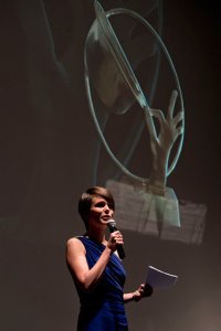 Lucie Hiel, présentant, avec brio, le « Gala de Clôture » © Marie-Christine Paquot/ »EOP »