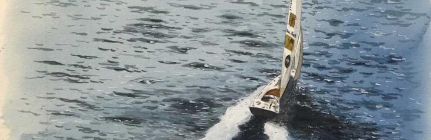 Naviguons donc, en noir et blanc, avec les planches de la saga intitulée « Les Chasseurs d’Ecume », ses vols de mouettes étant d’une extrême finesse, ainsi qu’en couleurs directes, avec « L’Or des Marées » et « Seul au Monde », où nous vivrons, en 5 volumes, les 124 jours de navigation solitaire de Sébastien Destremau, arrivé 18e, en 2016-2017, sur 29 concurrents, lors du 8e « Vendée Globe », couru sans assistance et sans escale…