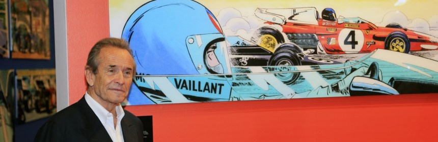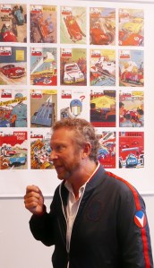 Se laissant volontiers photographier devant « Ickx’s Ferrari », un tableau de « Michel Vaillant Art Strips », agrandissement d’une case dessinée par Jean Graton (°Nantes/1923/créateur, en de ce célèbre personnage de la BD franco-belge), illustrant un départ du Grand Prix de Belgique de Formule 1, où Michel Vaillant surveille la « Ferrari 312 B » de son rival et ami Jacky Ickx, qui nous confiait : « Pour une fois, ici, je dépasse Michel Vaillant« …