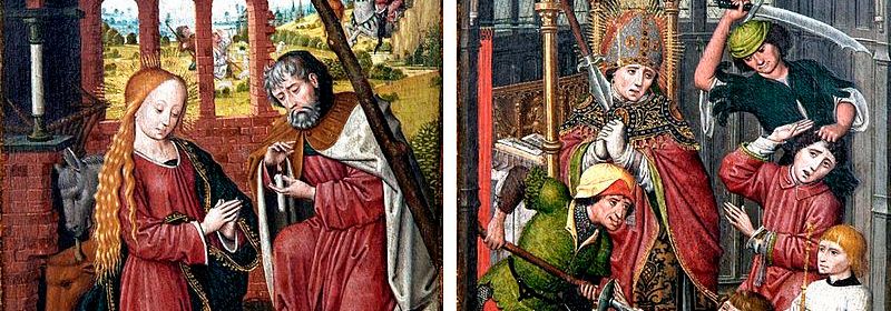 *** Diptyque Palude : Du nom de son commanditaire, ce double panneau polychrome a été réalisé entre la fin du XVè siècle et le début du XVIè siècle. Oeuvre anonyme, vraissemblablement réalisée par un peintre local, son premier panneau illustre le martyre de Saint Lambert tandis que le deuxième représente la Nativité. Étant donné son grand intérêt artistique et historique, son excellent état de conservation et son lien séculaire avec la Cathédrale Saint-Lambert, à Liège, ce dyptique Palude, désormais présent au « Musée du Grand Curtius », à Liège, a été classé le 04 février 2020.