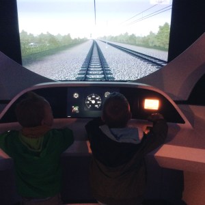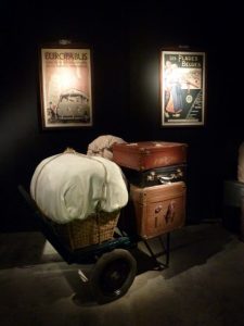 Mais il est temps d’évoluer à l’extérieur, à l’arrière des bâtiments, afin de gagner l’entrée réelle de « Train World », fort de son univers théâtral et multisensoriel, en suivant une petite fille à la robe rouge, chère à Paul Delvaux, qui, figurant sur plusieurs de ses peintures, est, ici, peinte sur des panneaux, afin d’être notre guide, nous permettant d’évoluer entre les toiles du maître, de l’exposition temporaire et le matériel ferroviaire historique, de la collection permannente de « Train World ».