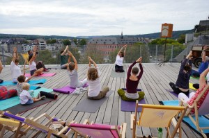 Atelier de Yoga, sur la terrasse du « Delta » © Province de Namur