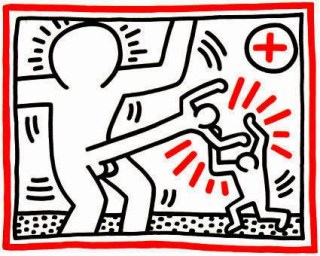 Informé de sa séroposivité, en 1988, Keith Haring, homosexuel (« L’esprit gay est partout. Vous ne pouvez vousz rendre au bureau de poste sans draguer ou être dragué », écrivit-il) prend, ensuite, faits et causes pour l’information relative au sida, et la communauté « LGBTQ » (« Lesbian, Gay, Bisexual, Transgender and Questioning »), via ses dessins érotiques, un pénis devenant un personage de bandes dessinées.