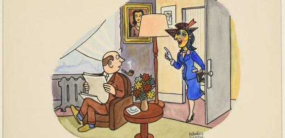 Le dessinateur français Maurice Henry utilise l\'imaginaire collectif lié à Picasso dans ce dessin plein d\'humour, \"Devine chez quel peintre je viens de poser ?\"