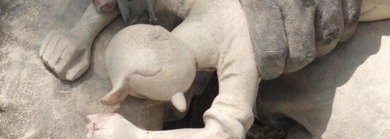 En Feronstrée, sur les 2.500m2 de l’ancien « Décathlon », l’artiste français Sean Hart (°1981), au risque de choquer les ayant droit d’ « Hergé » (Georges Remi/1907-1983), nous propose, dans son oeuvre « Parce que ! », de découvrir « Tintin et Milou » transpercés par des lances de l’ex-Congo belge, qu’ils visitèrent dans « Tintin au Congo » (Ed. « Casterman »/ 115 pages noir et blanc, en 1931, 62 pages couleurs, en 1946).