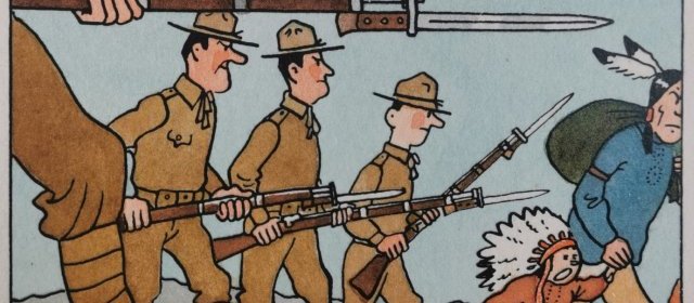 L’armée américaine chassant des Amérindiens de leurs territoires © Hergé-Moulinsart 2021