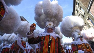 Durant les semonces © Amandine Lison/« Victro »Enfin, par un escalier de pierre, en colimaçon, nous accédons à l’arrière de l’auditorium du « MÜM », accueillis par un le mannequin d’un gille, coiffé de ses plumes d’autruches, afin d’assister à la projection, sur grand écran, d’un film réalisé, en 2019 et 2020, par un autre Binchois, Thibault Cyriaque (« Diplo Studio »). Nous terminons ainsi notre voyage au coeur du Mardi gras binchois, par une totale immersion festive, du bourrage du gille, avec ses huîtres et son champagne, vers 3h du matin, jusqu’au feu d’artifice, digne clôture de la magie du Carnaval de Binche…