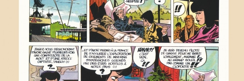 Quant à la dernière case de cet album (p.144), la dernière de « Survol interdit », elle nous rappelle le côté sentimental d’Ernest Laverdure, qui dit, dans un soupir : « Mon seul regret, c’est Li Ling« , Michel Tanguy répliquant : « Bah, les Françaises ne sont pas mal non plus. Souviens toi !… »
