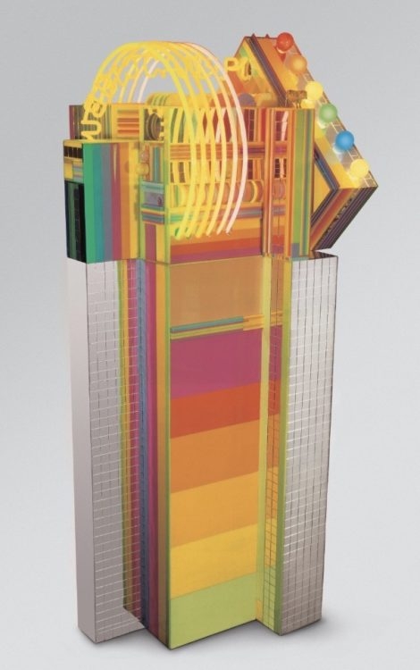 Découvrant, dès les années ’60, les nouveaux matériaux que l’époque met à sa disposition : enseignes au néon, plexiglas et résines, enthousiasmée par le souffle exaltant de liberté et d’émancipation, qui bouleverse alors la société, elle réalisa, alors, des sculptures vibrantes de couleurs et de lumière, créant des« boîtes », où les effets optiques et spéculaires prédominent.
