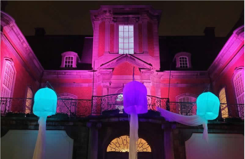Cette année, nous avons rendez-vous face à la gare ferroviaire (« Aero », sculpture fluorescente peinte à la main, signée Alexandra Mine), dans des arbres du Parc Louise-Marie (« Magica Arbores »), devant la façade du « Musée des Arts décoratifs » (« Aquafera »), près de l’église Saint-Loup, sur le Beffroi et sur l’esplanade de la toute nouvelle « Confluence ».