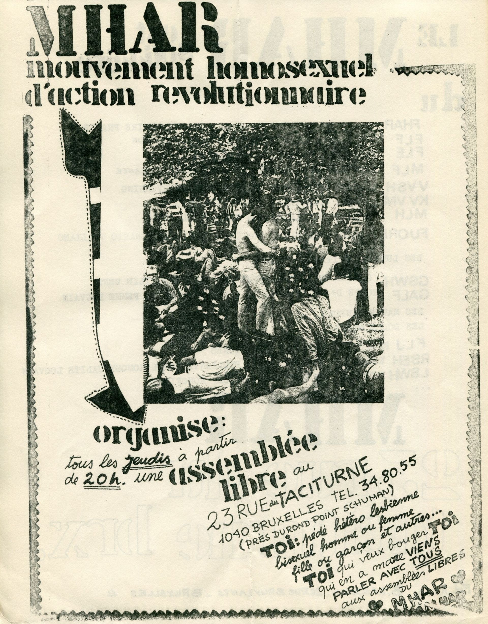N’oublions pas qu’en 1965, l’article 372bis du Code Pénal belge éleva la majorité sexuelle, pour les relations homosexuelles. Aussi, les premières associations, essentiellement masculines, se limitaient, bien souvent, à offrir un espace protégé de rencontres. Ainsi, ce n’est qu’au lendemain de « Mai 68 », que sont apparus d’autres groupes, porteurs d’une autre vision du militantisme et de l’identité homosexuelle.