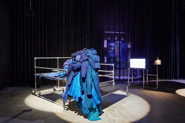 Ce décor théâtral prend vie grâce à des sculptures inspirées des costumes et des textiles traditionnels, complétées par des supports audiovisuels réalisés par le collectif Qizlar. Le projet met l’accent sur les récits de femmes, les pratiques collectives et les relations complexes entre le corps physique et le monde environnant.