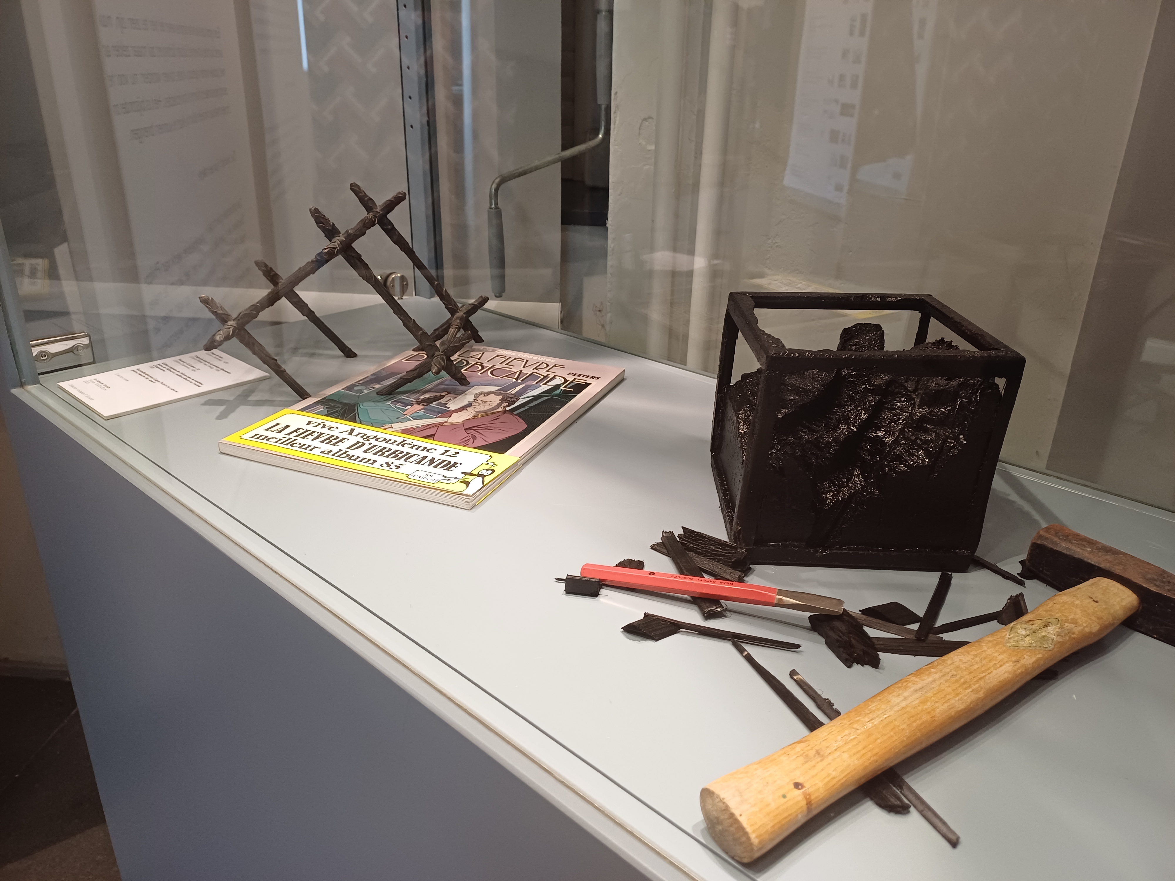 A gauche, en 3D, le cube d’Eugen Robick © Ph. : Régis Duqué/« Actua BD »